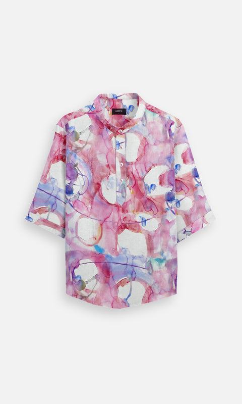 Artsy Pink (Pure Linen Kurta Style Shirt) - AddysForMen®️