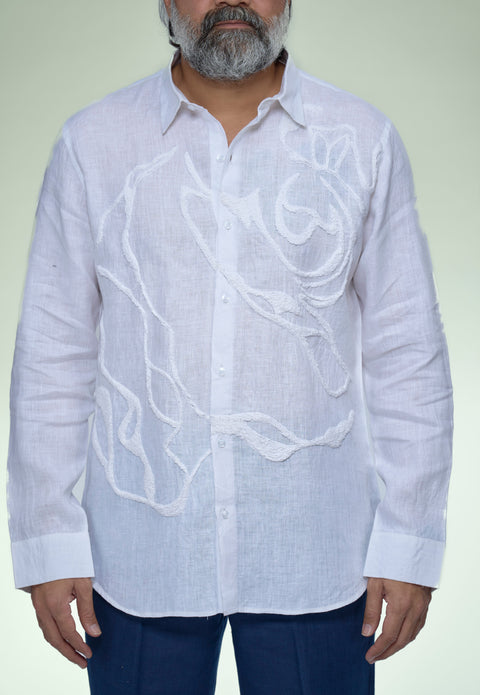 Artisan's Touch Hand Embroidery Pure Linen Full Sleeve Shirt - AddysForMen®️