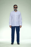 Every intricate motif on the chest and panels is stitched by hand, one needle-pass at a time. Unlike machine embroidery, these hand-worked details possess a unique texture and "soul" that creates a three-dimensional depth. The subtle tonal ivory-on-white embroidery offers a "Quiet Luxury" aesthetic—sophisticated from a distance, and breathtaking upon closer look.