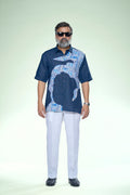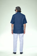 The Artistic Blue of Pure Linen Patching with Embroidery shirt by AddysForMen®️ make a bold style statement with this premium pure linen patchwork shirt, designed for those who appreciate creativity and craftsmanship in fashion. Crafted from 100% natural linen, this shirt offers exceptional breathability and comfort while maintaining a refined look.The deep navy blue base is enhanced with a unique patchwork panel featuring intricate embroidered patterns, creating an artistic and contemporary design. The contrast between the solid linen fabric and the detailed embroidered patch adds texture and character, making this shirt truly distinctive.