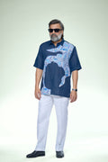 Artistic Blue Edition Pure Linen Designer Short Sleeve Shirt - AddysForMen®