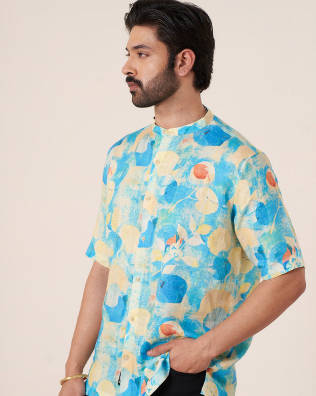 Aqua Bloom (Pure Linen Short Sleeve Shirt) – AddysForMen®️